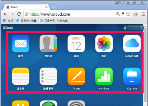 3、进入到苹果icloud里面,我们可以从iCloud列表栏目选项页面,根据个人需要在iCloud上面使用这些功能,例如:对手机查找定位,或者查看备份照片、通讯录、邮件等等都可以在这上面进行操作。