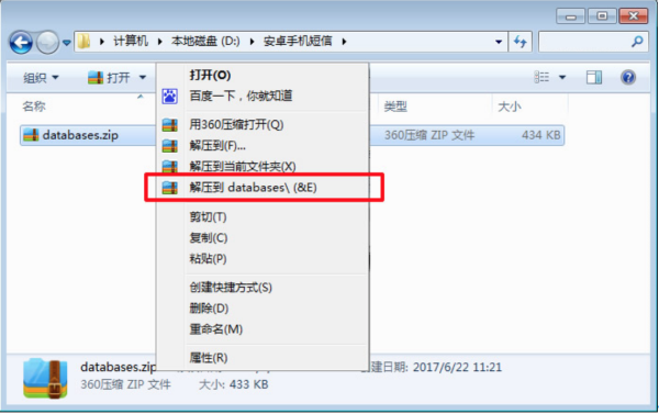 6,接着在电脑上右击刚接收到的databases.zip文件,然后将其进行解压;