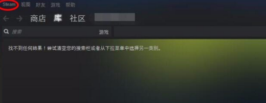 4.点击界面的左上角“steam”,也就下图中被红圈圈上的图标。