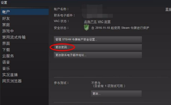 在登录steam后,点击steam在里面的设置里可以更改密码的,具体步骤如下。