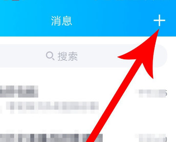 1、首先打开手机,进入QQ主页面,然后点击右上角的+,如下图所示。