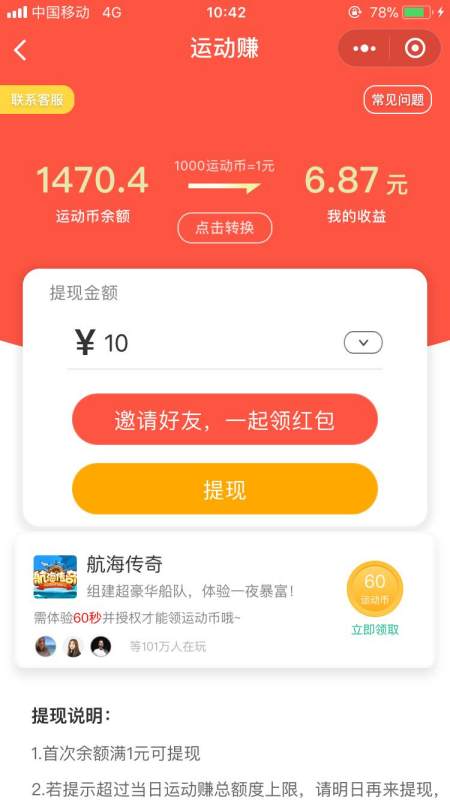 ,每走一百步可以获取1个运动币,邀请好友也可以获取运动币,