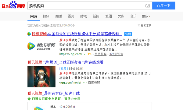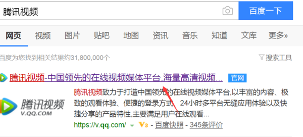 1、百度搜索输入“腾讯视频”,打开进入腾讯视频官网。