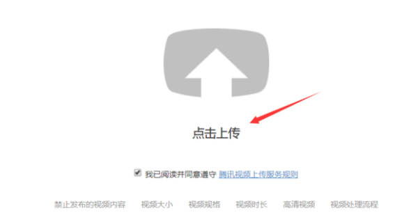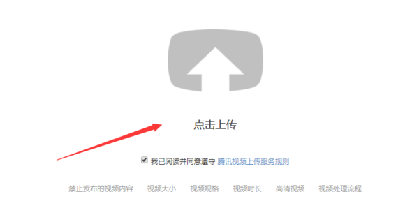 3、进入腾讯视频的上传界面后,点击上传,然后上传你拍的视频就可以了。
