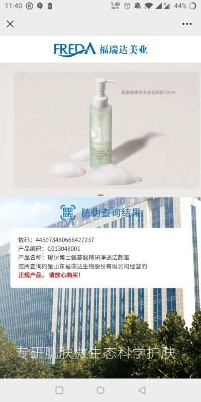 你好!瑷尔博士的每一款产品都是可以查到真假的,大家可以从官网上来验证真假,也可以扫产品包装上的防伪码来辨别真假,打开微信扫一扫,将包装上的防伪码放入扫描框内,即可跳入查询真假的页面。