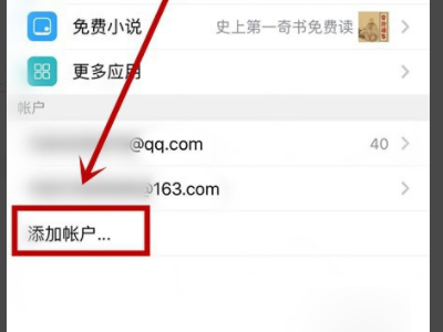 2、在邮箱首页,下滑至添加账户并点击进入。