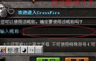 1.打开穿越火线的修改昵称的对话框,将光标移动到输入昵称这一栏;