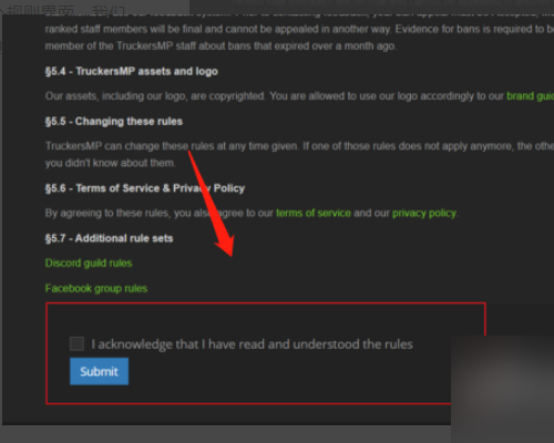 2、注册完成后可能会出现这个规则界面,我们可以看一下规则,然后拖到最下面打勾并且同意。