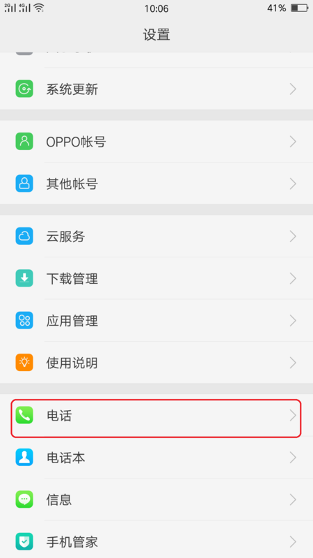 2、进入设置页面之后,在下方找到“电话”并点击打开。