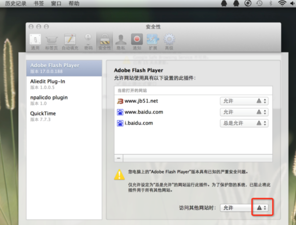 有的用户在mac上看在线视频或浏览某些网站的时候总显示Flash已过期,需要下载新的版本,可是到adobe官网也没看到更新信息,用户无法通过Safari观看Flash内容。用户在使用Safari浏览器访问Flash内容的时候,会看到插件已拦截、Flash安全警告、Flash过期等提示信息,遇到这类情况: