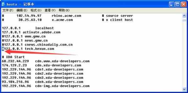 3、(示例!示例!示例!)把前面找到的http://music.163.com前面加上#号或者直接删除该行,就可以了~