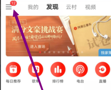 2、然后在打开的网易云音乐软件主页面中,点击左上角的菜单按钮“三”,如图所示。