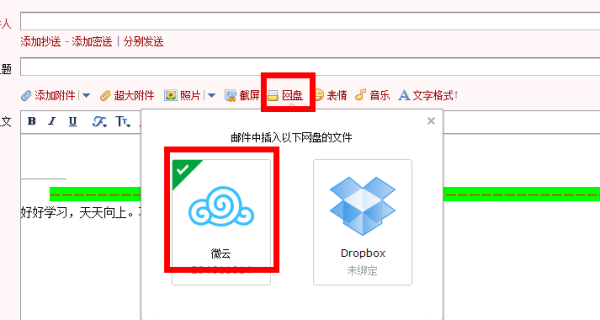 如果您认为以上方法过于麻烦,可以选择上传到微云,写信时选择从网盘添加文件,这样或许就不会上传失败了