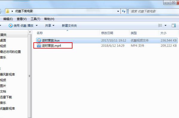 6.如果在转换之前先做了“转换完成后,打开存放文件夹”的设置,当转换完成后,就会自动弹出设置的转码保存路径。下图就是自动弹出的文件存放路径,可以看到kux格式的视频已经转成mp4格式的了。
