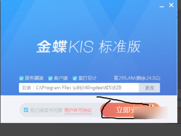 2、双击金蝶KIS标准版V11.0安装程序.exe,弹出金蝶KIS标准版安装页面,点击立即安装。