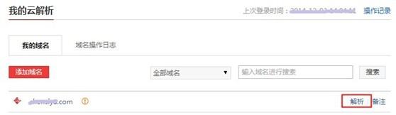 3.添加解析成功后,解析记录已自动生成,您可以点击左侧导航的【我的云解析】,进入万网云解析进行查看。
