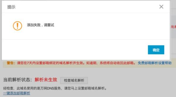 如果您的邮箱域名和邮箱产品不在同一会员ID下则需要在您的域名所在账号或单域名管理控制台添加解析,解析生效后才可以使用。
