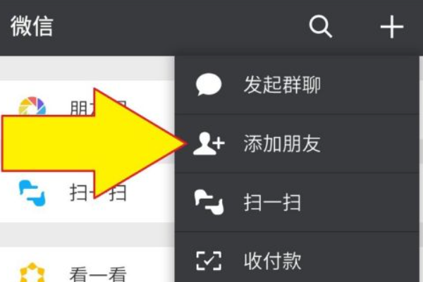1、在微信界面中,找到右上方的加号图标,点击进入。