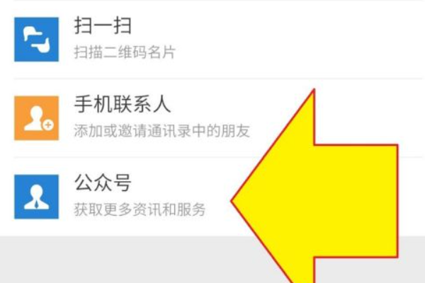 3、在添加好友界面中,找到公众号选项,点击进入。