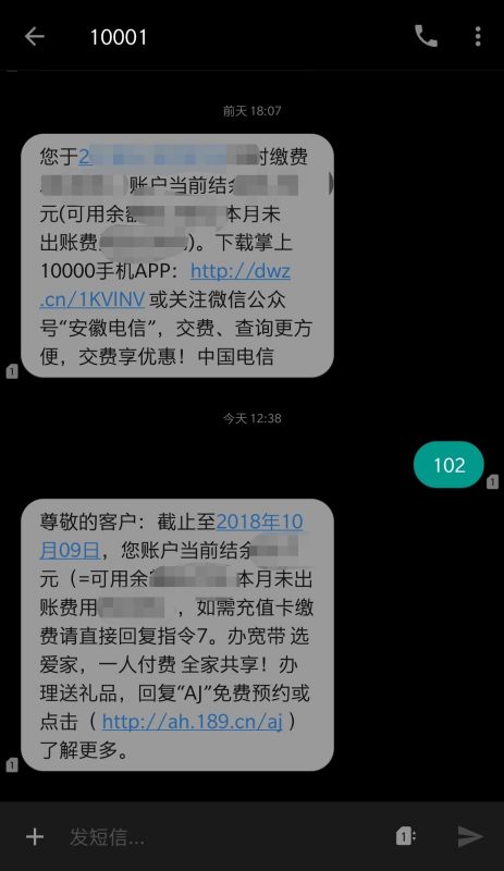 中国电信123当月实时话费请回复101【话费翻倍福利,冻50得100】】