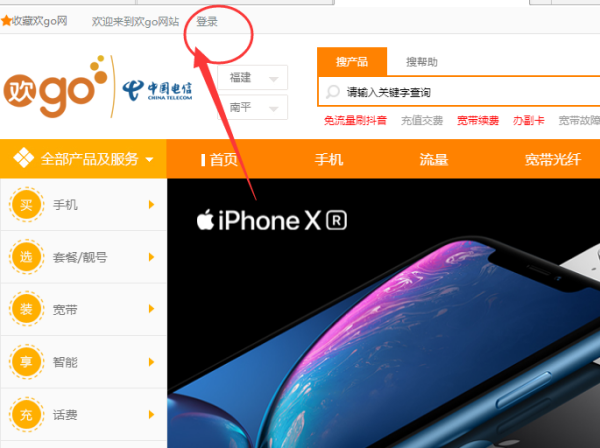 1、找到电信官网地址:中国电信网上,点击上方的”登录“,具体如图所示:
