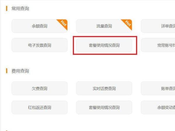 4.在打开信息查询页面,点击“包使用情况查询”按钮;