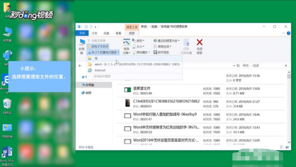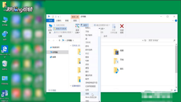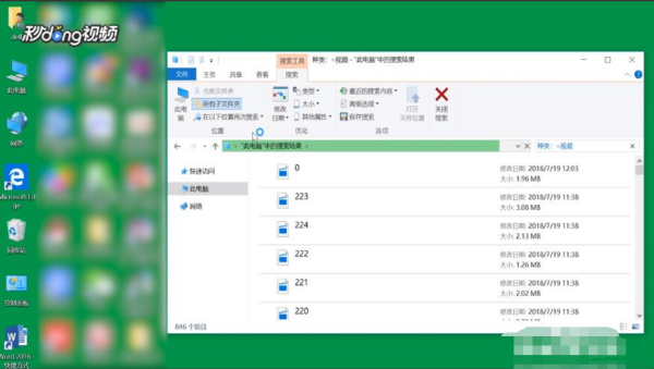 3、此时搜索框内就会出现“种类=视频”,系统就会自动搜索此时位置中的所有视频了。