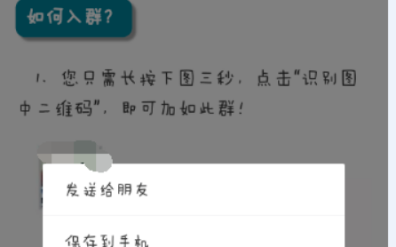 3、点开自己感兴趣的微信信息阅读,一般,在微信信息的下方会有群二维码公布,可长按此码,识别图中二维码加入。