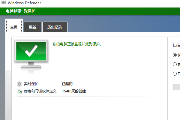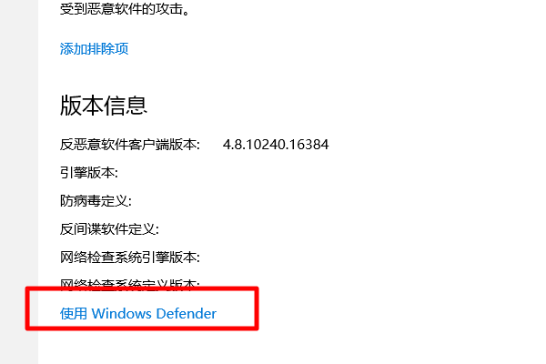 解决:退出第三方安全软件,使用系统自带的windows defender。操作如下: