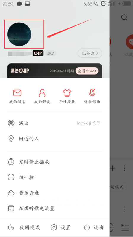 1、在手机版网易云音乐点击自己头像进入个人主页面。