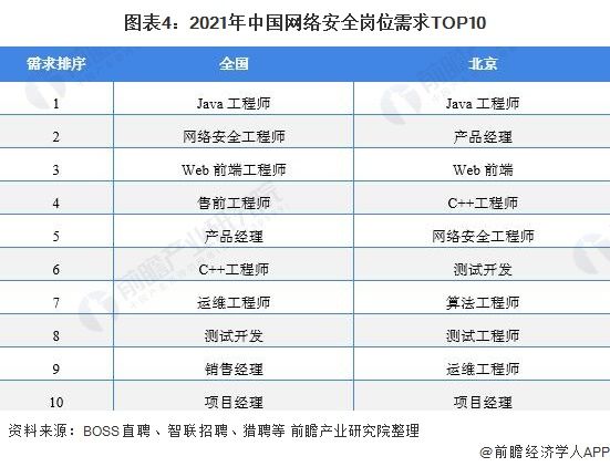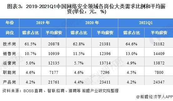 在我国大数据快速发展的今天,大数据泄密事件时常发生,未来我国或许需要更多的网络安全领域的人才进行网络安全管理,保障我国国家安全。2019-2021年第一季度,网络安全技术岗一直是我国需求量最大且薪资最高的职业,而Java工程师、网络安全工程师、Web前端工程师等职业也成为了我国网络安全领域热门的职业。