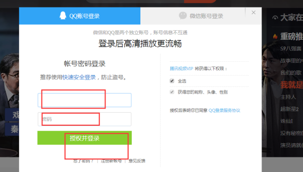 4、在出现的界面中,输入账户和密码,点击“授权并登录”按钮。