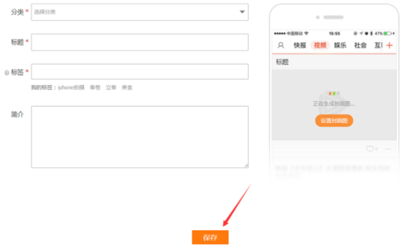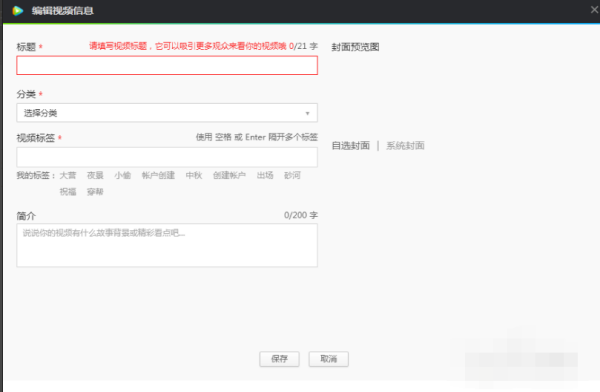 8、输入标题,设置分类,设置视频的标签和视频简介,点击“保存”按钮。