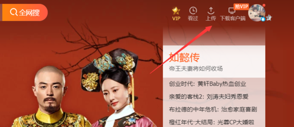 2、进入官网后,登录账号,点击官网主页右上角的上传。