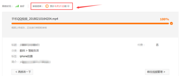 12、审核通过后,视频就会被传上腾讯视频。在自己的视频管理中也可以看到。