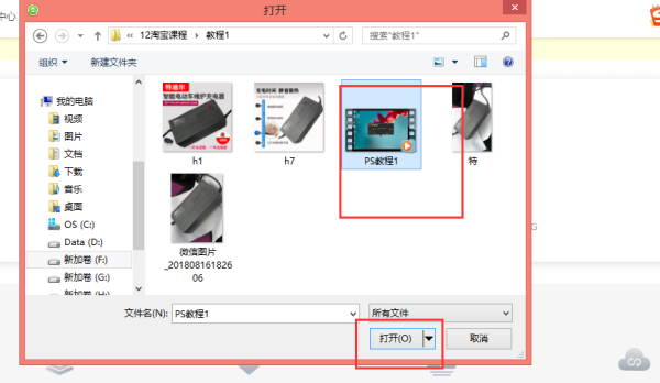7、在弹出的界面中,点击选中自己已经录好的视频,点击“打开”按钮。