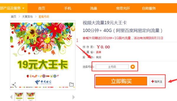 2、点击进入专题页,挑选一个喜欢的号码,然后点击立即购买
