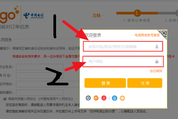 5、此时会需要先登录电信账号,将电信手机号码和密码输入后点击登陆。