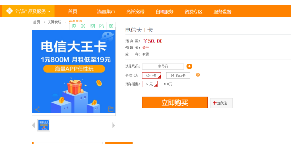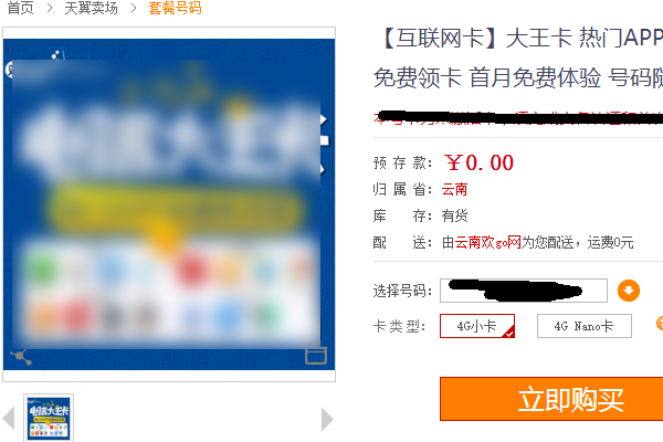 4、进入之后,在卡类型里面选择相对应的卡,选择立即购买。