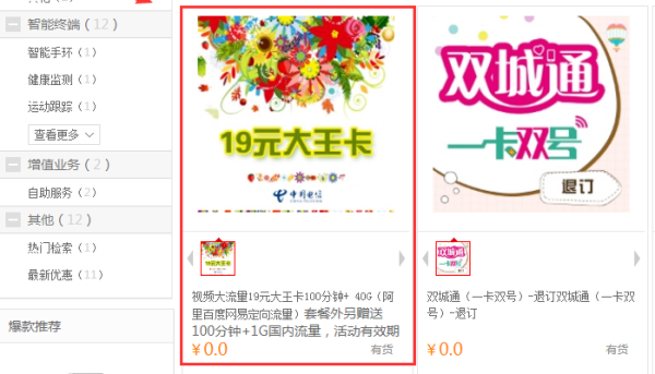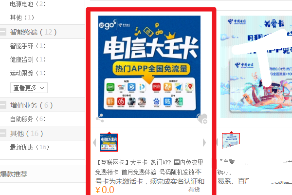 3、接着在搜索出来的页面,点击电信大王卡进入。
