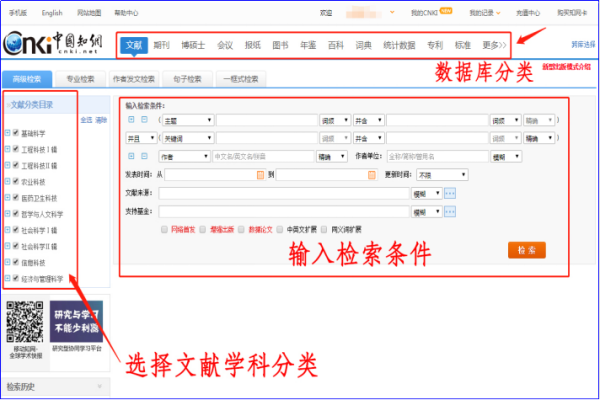 每个数据库都提供初级检索、高级检索和专业检索三种检索功能。高级检索功能最常用,CNKI数字搜索让研究变得简单。