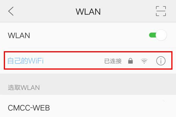 1、查看状态栏是否有WiFi图标,或进入设置--WLAN,查看是否已成功连接WiFi。 -