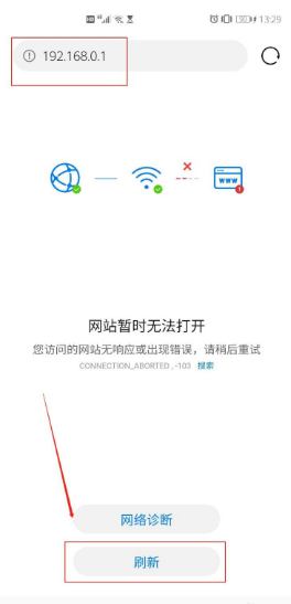 第二步、打开浏览器,网址处输入192.168.0.1,点击刷新。