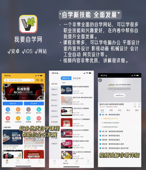 自我提升的神仙app,各种免费课程资源丰富,随时随地可以跨专业自学,部分课程需要????,但是价格良心,靠每天打卡也可以免费看。