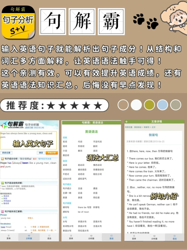 神仙分析句子app,一键分析句子app,自动识别语法错,长难句语法分析,四六级顶配