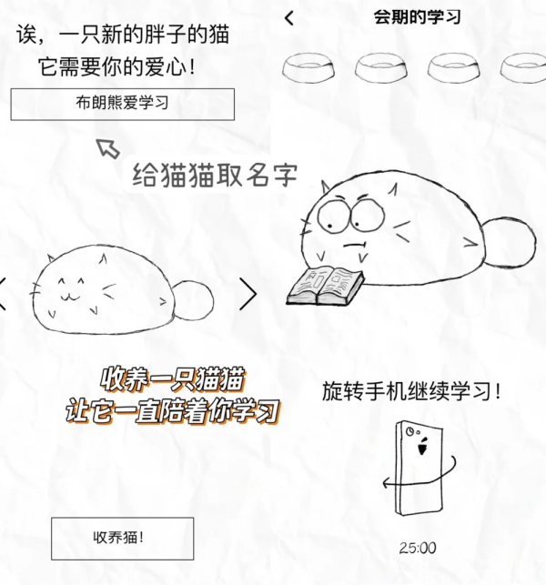 每一次学习,就能养肥一只猫。每一次偷懒,就会饿死一只猫