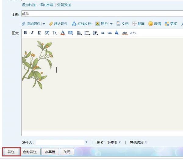4、邮件文本编辑完毕之后,点击底部“发送”按钮,即可成功发送电子邮件。
