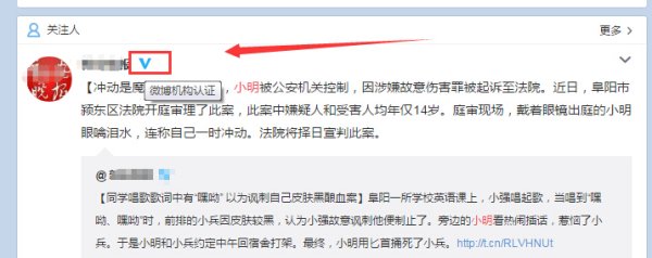 一,打开新浪微博,随意点击有加V的微博中的蓝V,
