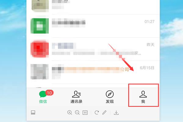 2、在微信号主界面右下角,点击“我”,如下图所示: