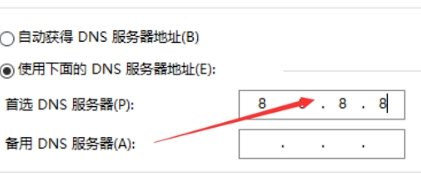 3、在属性窗口,点击使用下面的DNS服务器地址,将首选DNS服务器后输入8.8.8.8,点击确定即可。